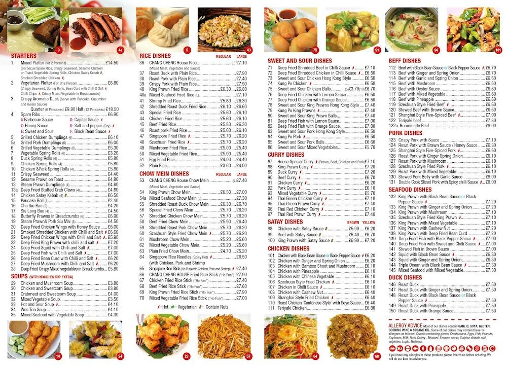 Chang Cheng's extensive menu showcases a wide range of Chinese dishes, organized into categories to make selection easy. Start with enticing starters like the mixed or vegetarian platters, perfect for sharing. The rice dishes, including the signature Chang Cheng House Rice and king prawn fried rice, offer a variety of flavors uncommon in other takeaways. For those who crave sweetness, the sweet and sour dishes, particularly the sweet and sour chicken Hong Kong style, are crowd-pleasers. Meat lovers can choose from an array of beef, pork, chicken, duck, lamb, and seafood dishes.